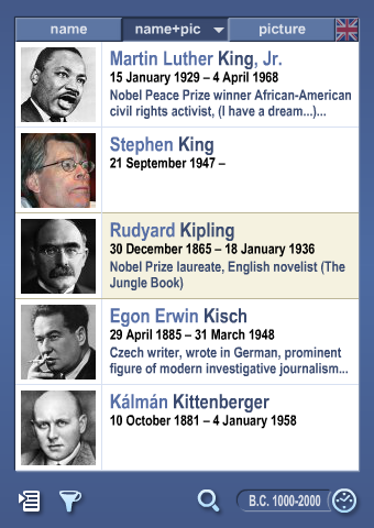 Though the Hall of Fame app including more than 1,000 famous people can be found among history tools, it can be used in almost any classes, just use the filter panel to narrow the list of people according to your needs.