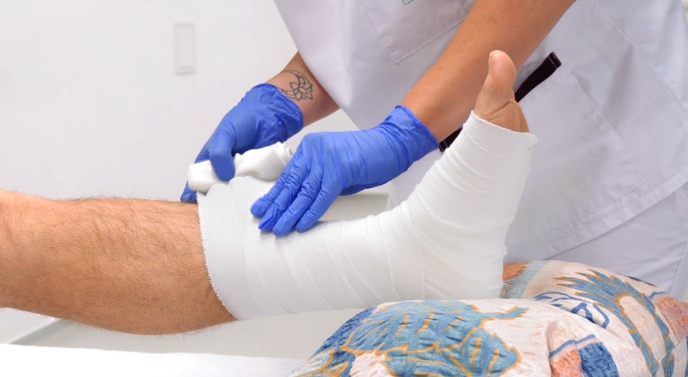 This video demonstrates how to apply a compression bandage to the lower limb.