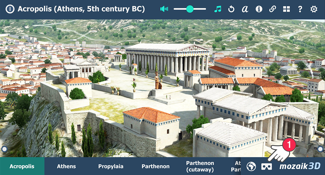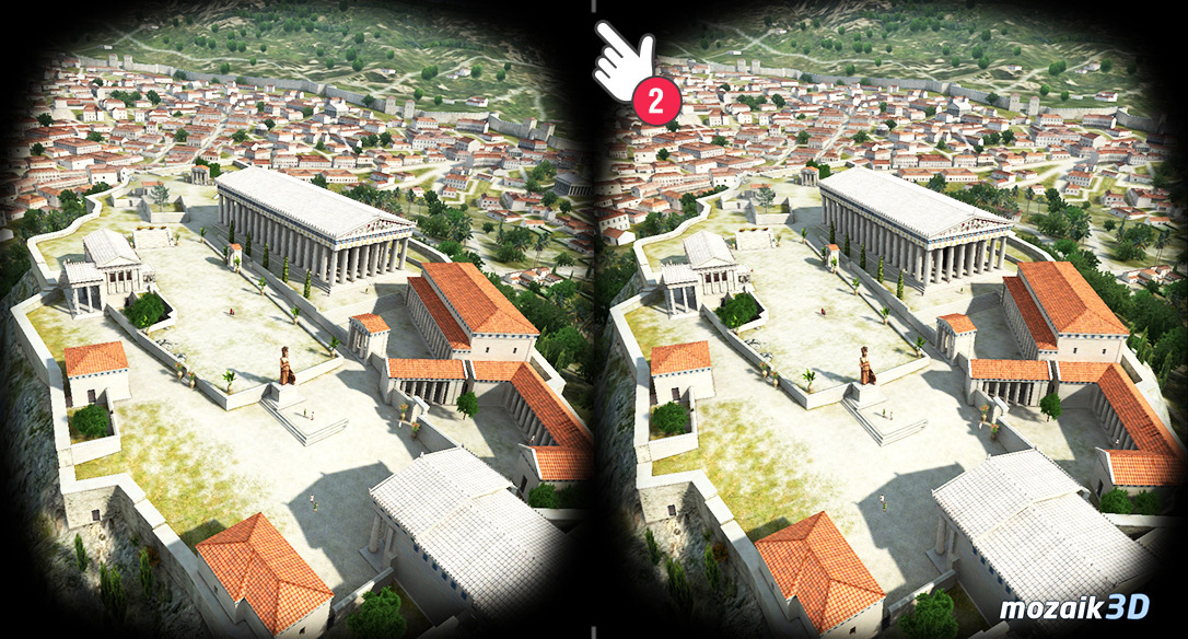 Bạn có thể đi bộ ảo trong hầu hết các cảnh 3D bằng tai nghe VR. Để làm được điều này, bạn cần một tai nghe VR để có thể đặt điện thoại thông minh của mình vào và ứng dụng mozaik3D mà bạn có thể tải xuống miễn phí.