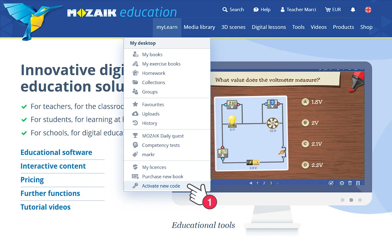 Để làm điều này, bạn chỉ cần đăng nhập vào mozaWeb sau đó nhấn vào myLearn > Kích hoạt mã mới và nhập hoặc dán mã giấy phép vào trường được cung cấp.