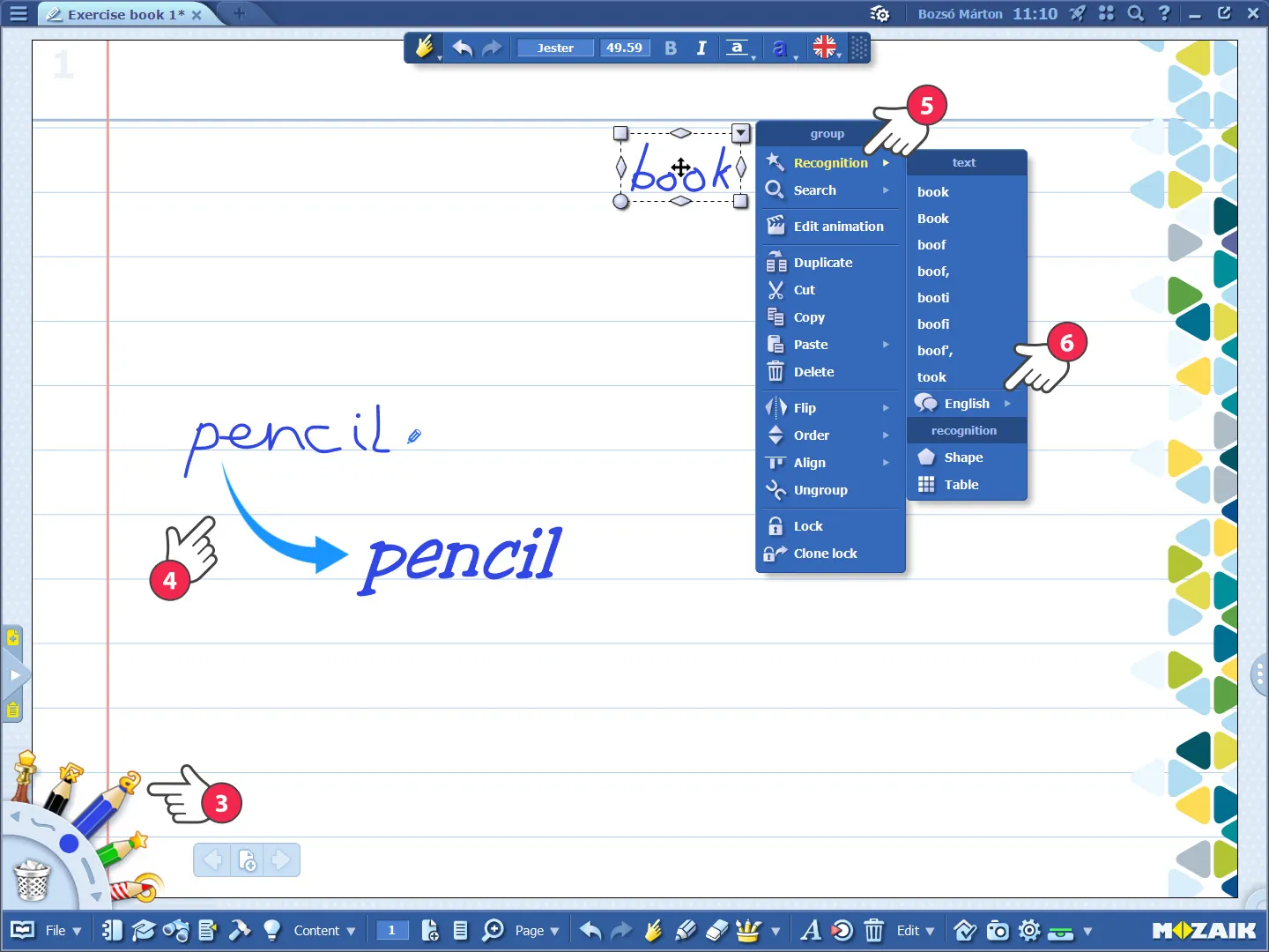In this case, mozaBook recognises the handwritten text within 2 seconds and converts it into digital text using the selected font type. (4)