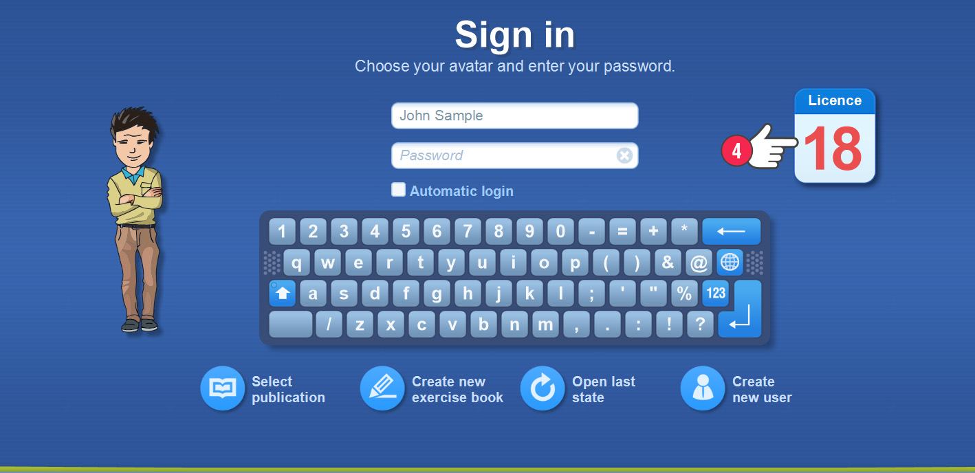 I have a Mozaik Teacher / Student licence (1): If you have a Mozaik Teacher / Student licence, you only have to log in using your e-mail address or your mozaWeb user ID and you can start using mozaBook immediately.