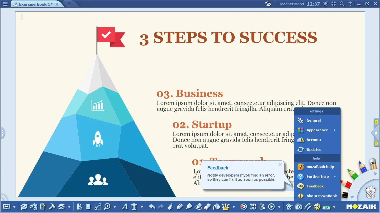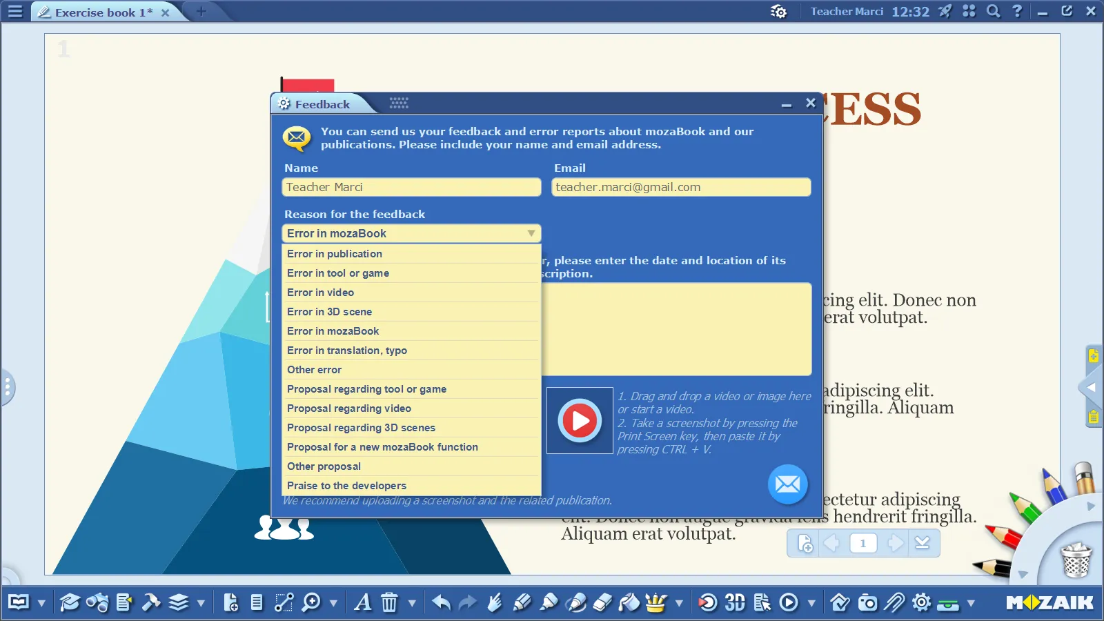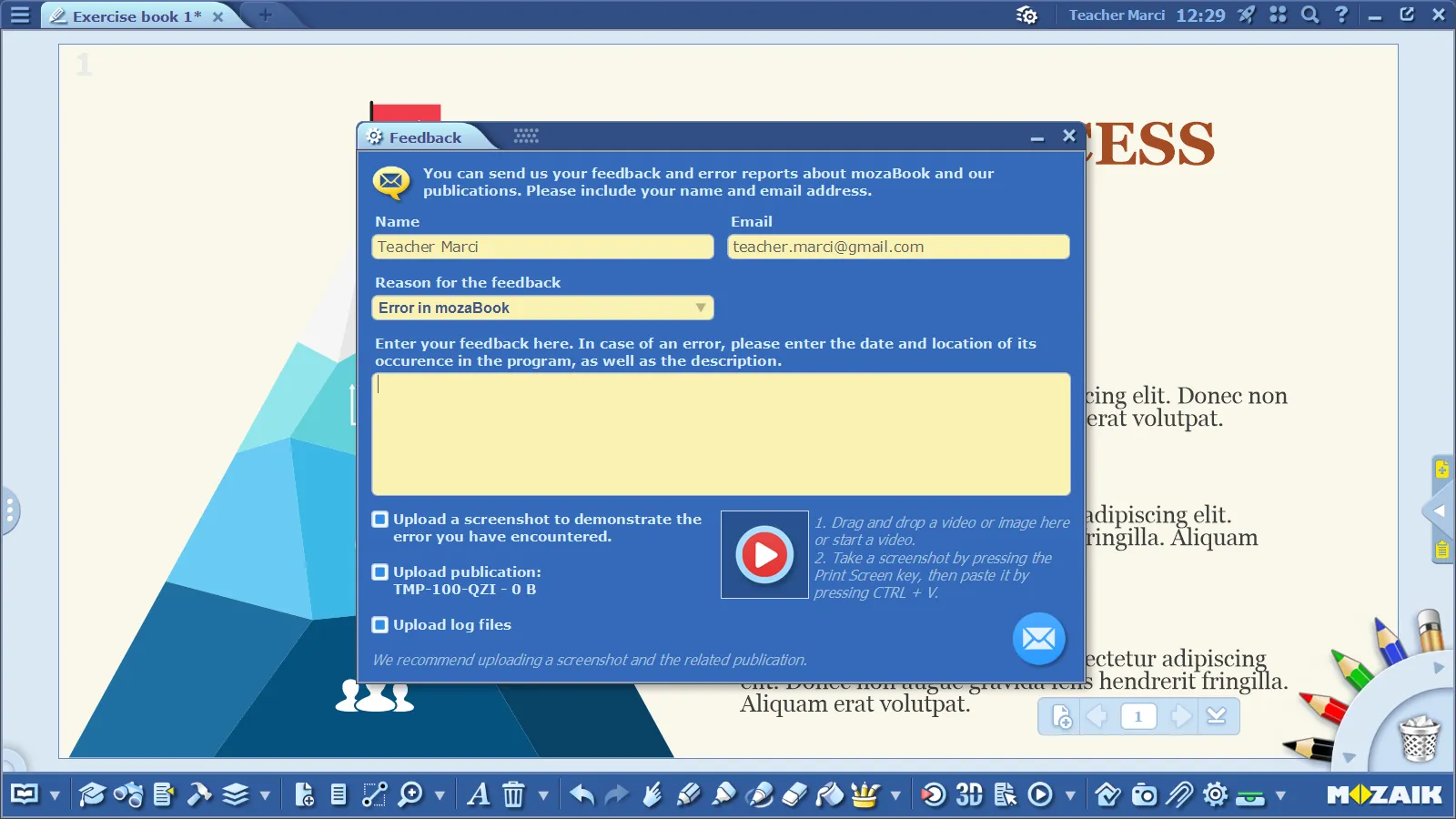 - Làm cách nào tôi có thể gửi phản hồi và báo cáo lỗi trong mozaBook?