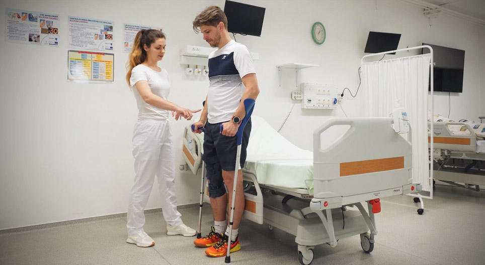 In this video, we will demonstrate the proper use of crutches for patients who need assistance with ambulation.