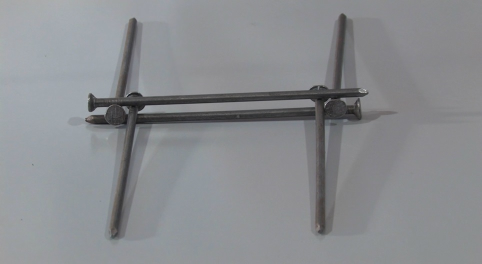 Can you balance six nails on top of a seventh vertical nail so that they all stay in balance?