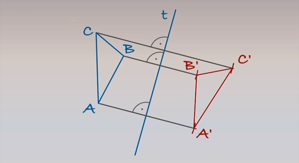 Trục t và tam giác ABC được cho trên một mặt phẳng cụ thể. Hãy vẽ hình ảnh phản chiếu của tam giác ABC.