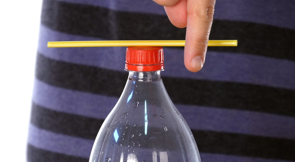 Di chuyển một ống hút trên đầu của một chai, mà không chạm vào nó.