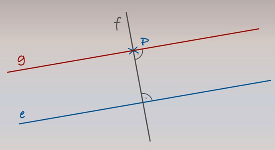 Hãy vẽ đường thẳng g sao cho song song với đường thẳng e và đi qua điểm P.